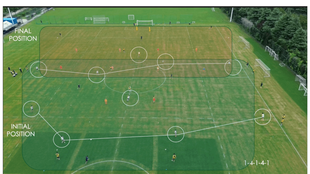 MD-5 EJERCICIO TÁCTICO DE EVOLUCIÓN 11vs0 EN 1-4-1-4-1/ MD-5 TACTICAL EXERCISE – EVOLUTION 11vs0 SYSTEM 1-4-1-4-1.