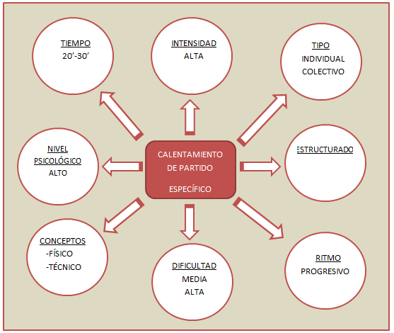 Dentro del calentamiento de partido podemos seguir las siguientes pautas: